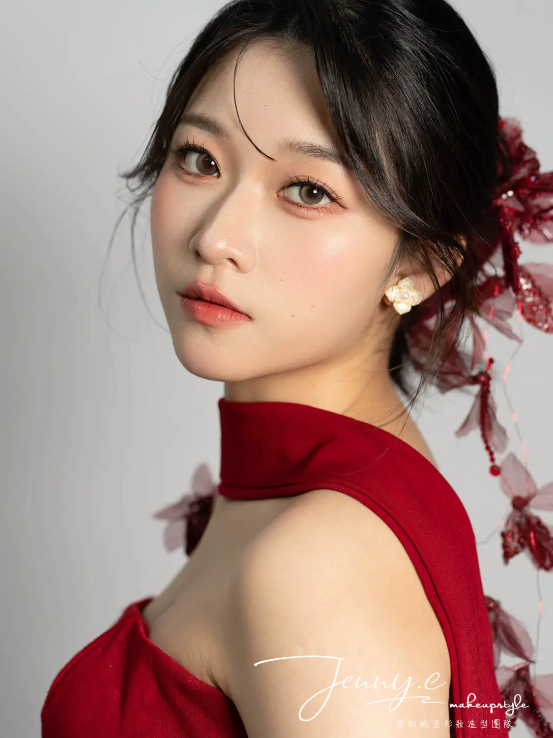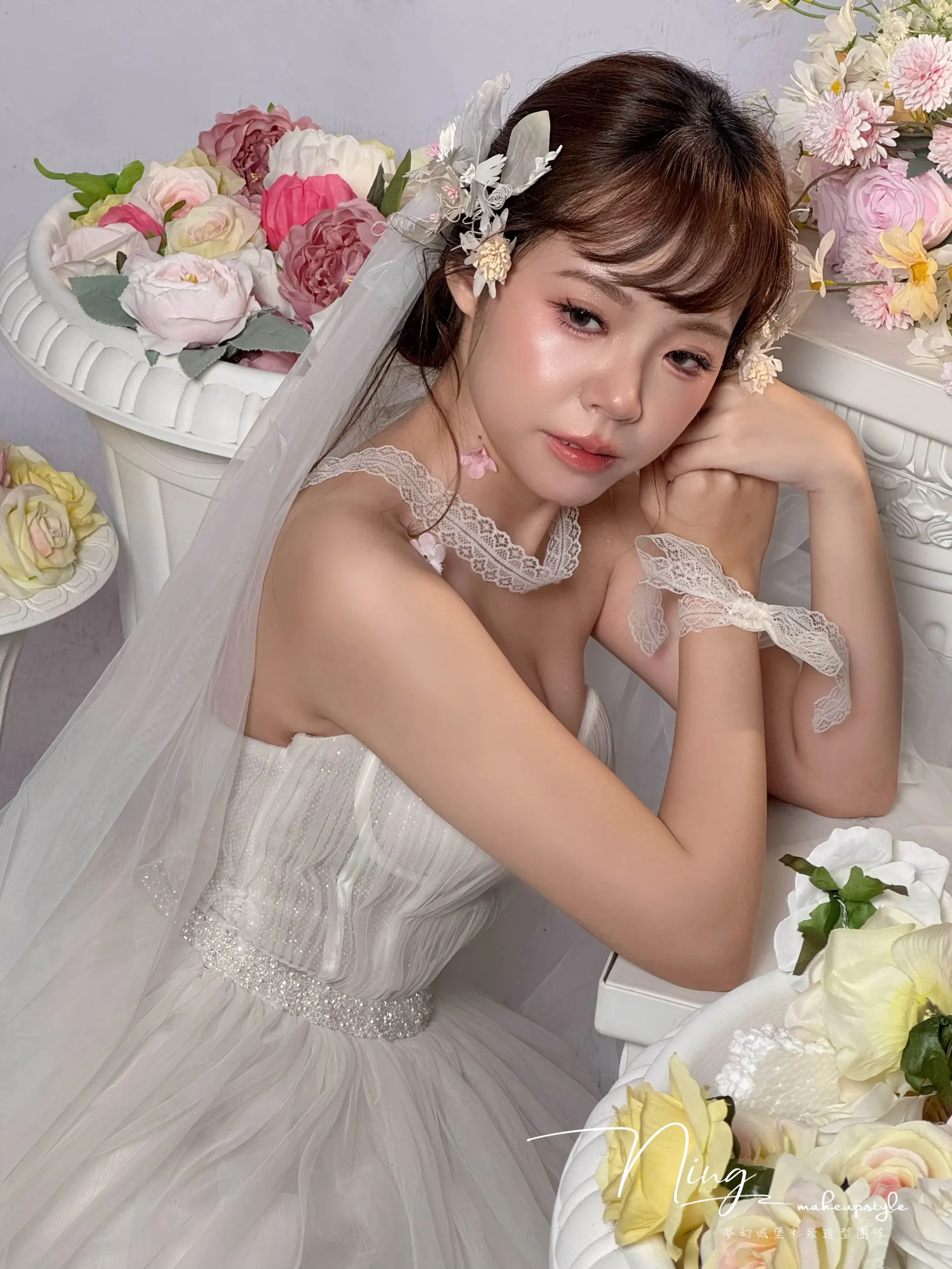 設計彩粧色系並搭配不同的飾品完美呈現幸福浪漫的妝容。