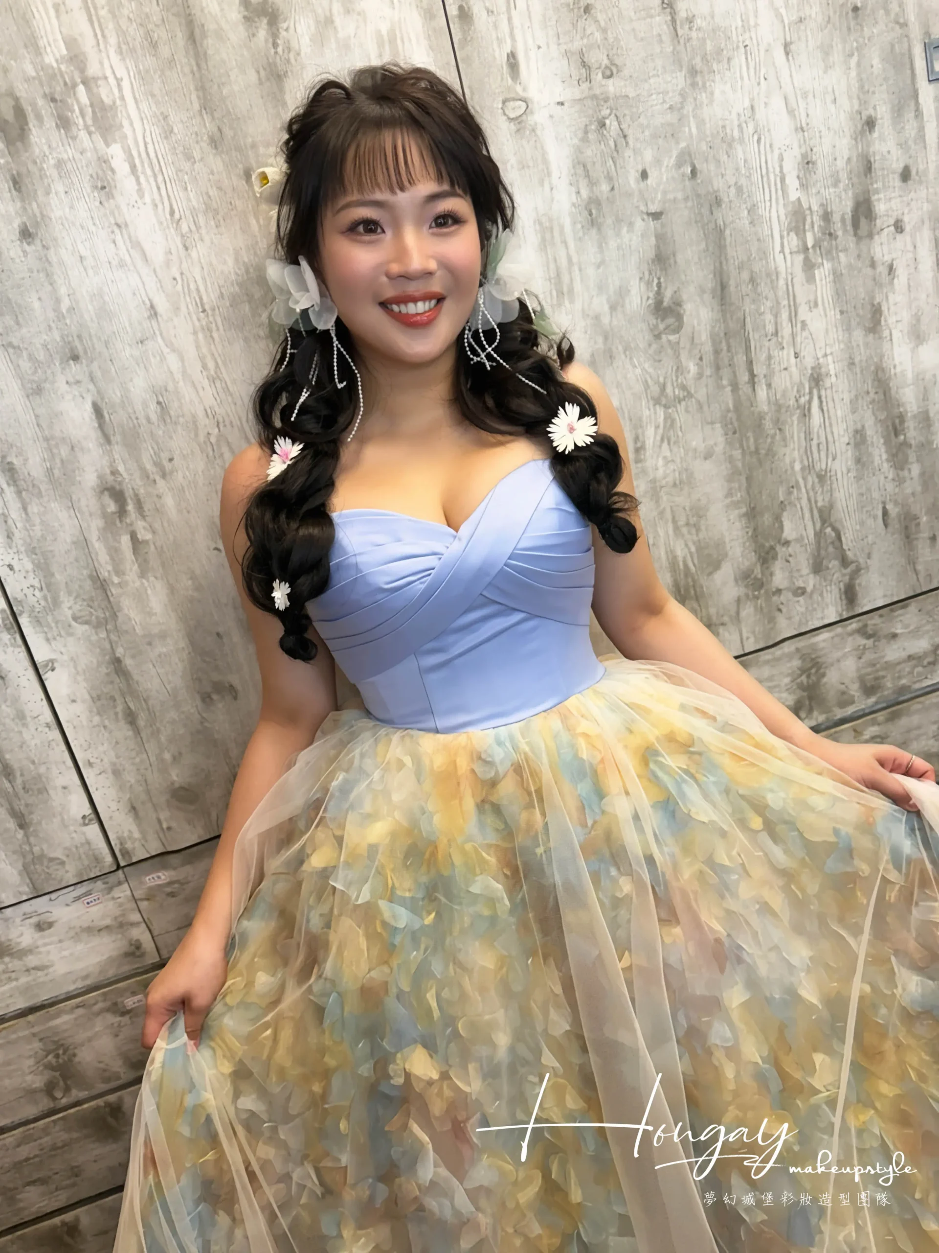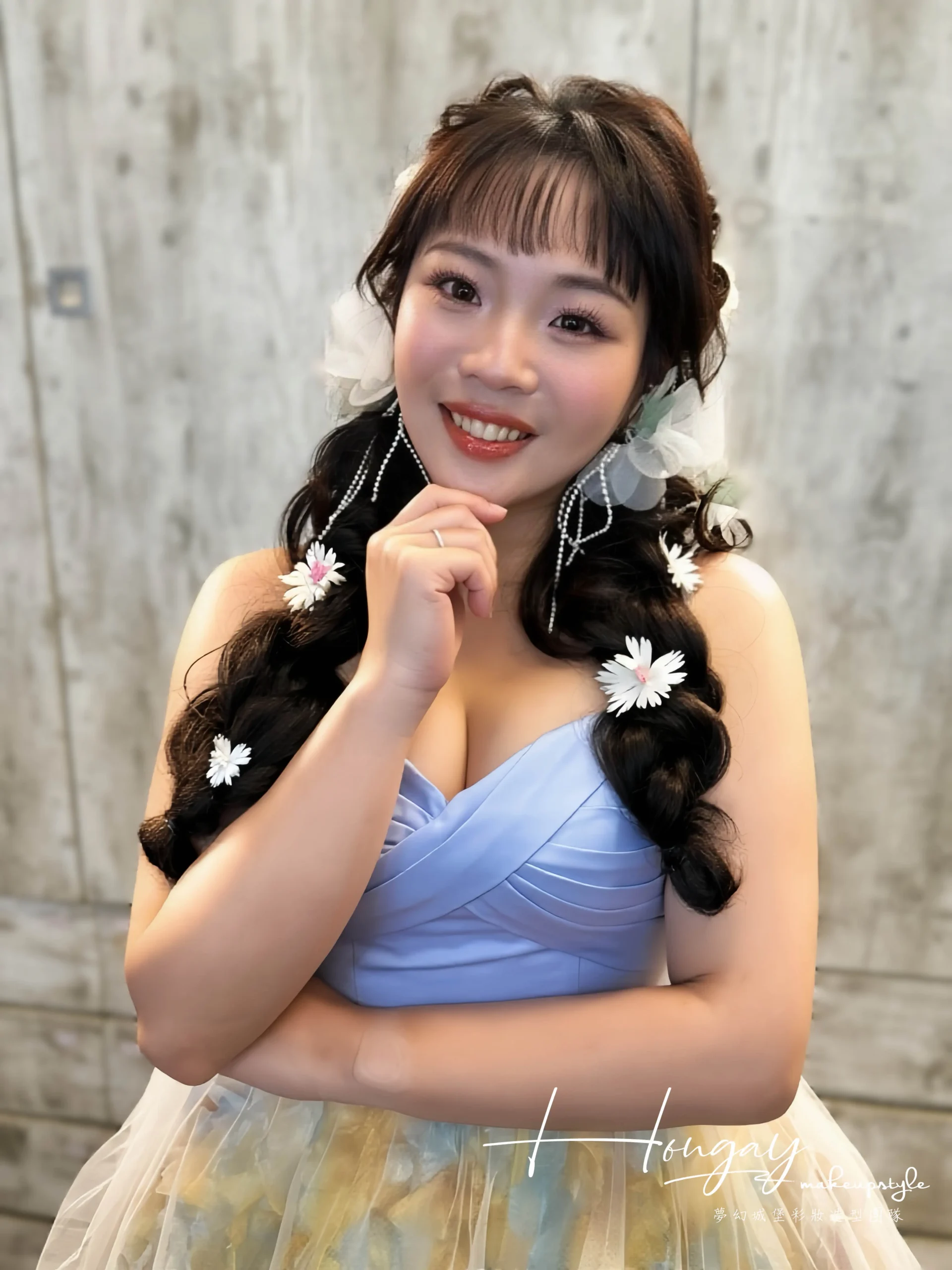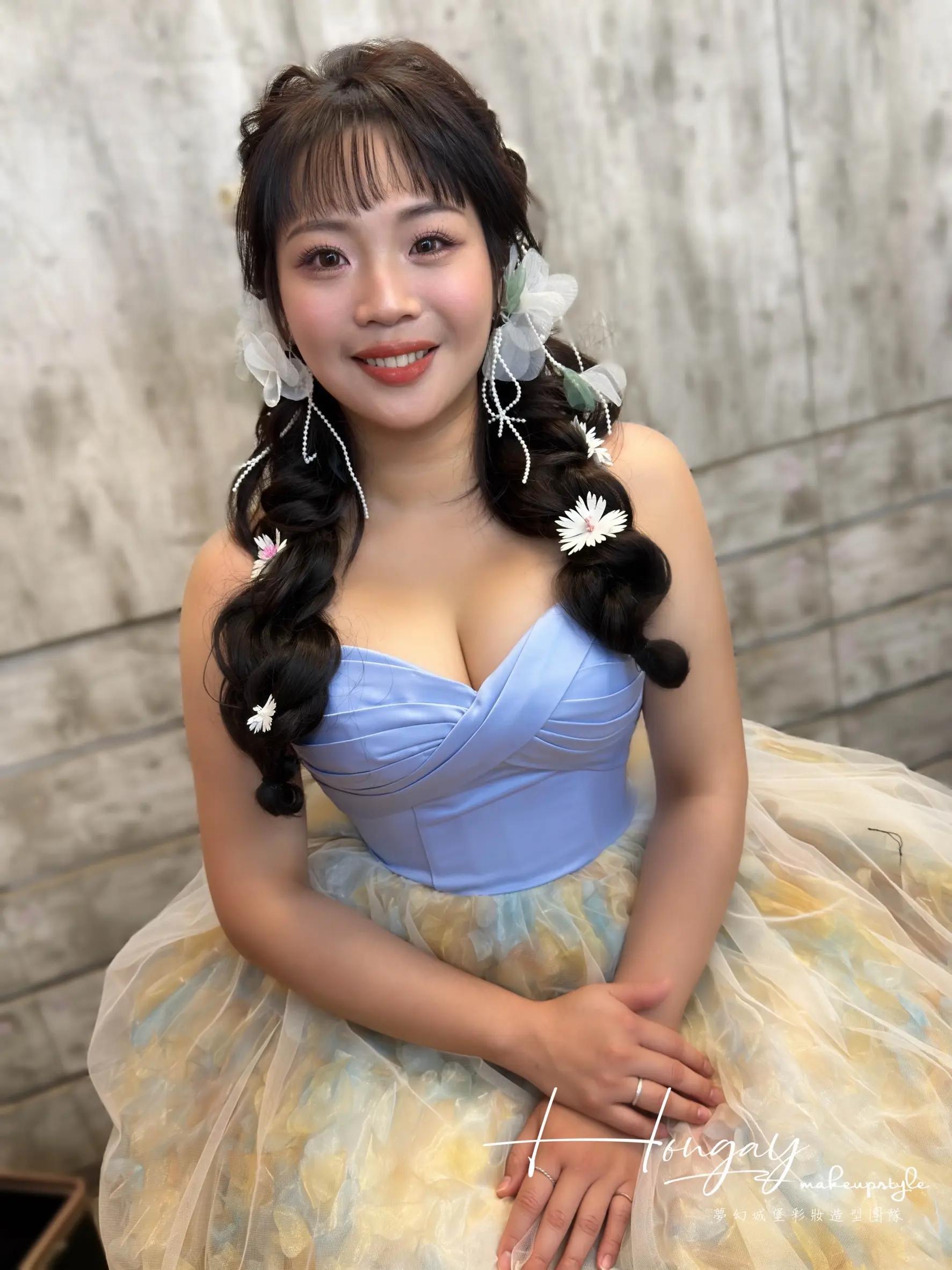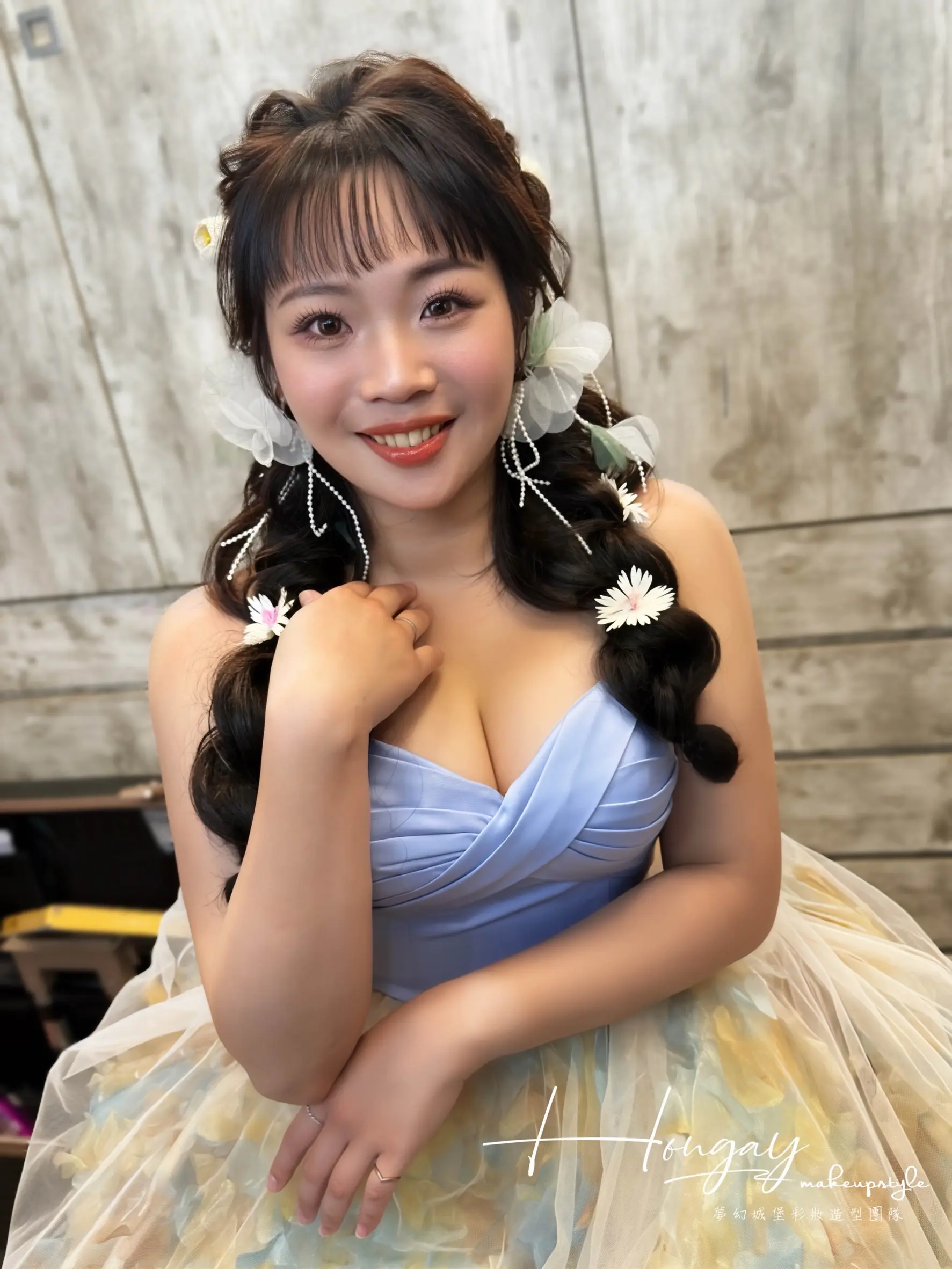 水水可是短髮及肩的唷!搭配髮片及老師的編髮手法無痛變身長髮成花系列女孩~